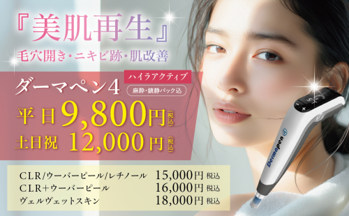 同日施術でより効果的美容医療セット価格のご案内です。角質&毛穴ケアで、ニキビ・脂性肌の方にオススメ。ケミカルピーリング+エレクトロポレーション9,900円ケミカルピーリングについて詳細はこちら▶...