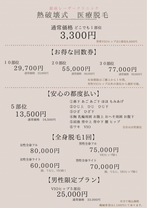 麻酔料金:顔 3,300円 VIO 3,300円