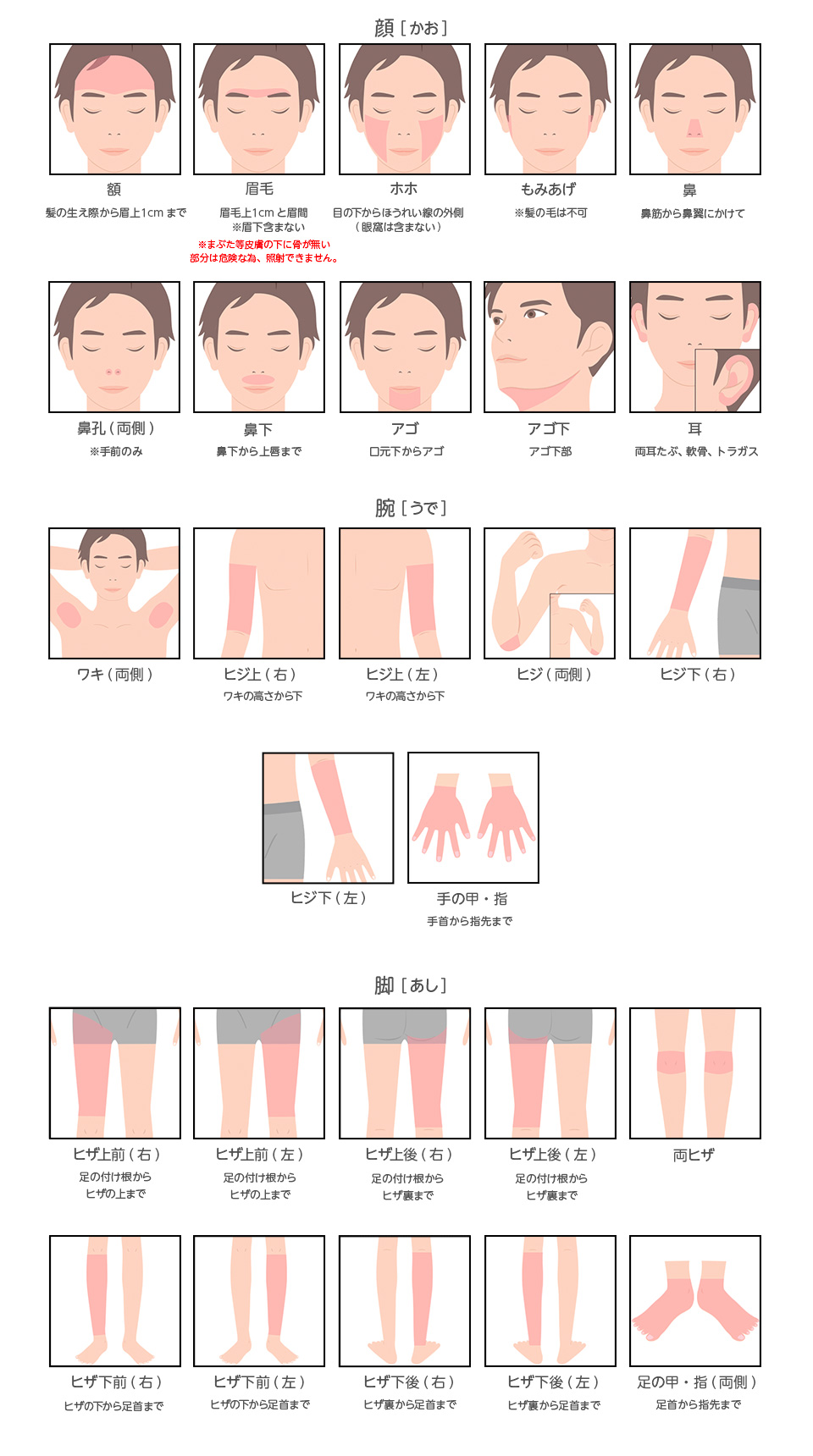 ・同一部位の予約は最低6週間空けてお取りください。
